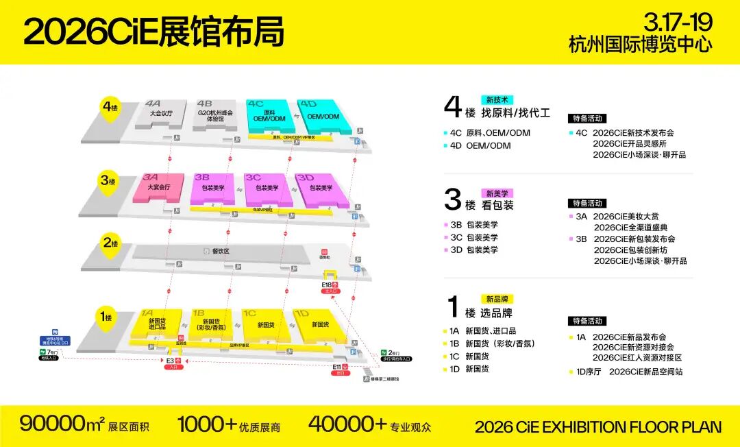 新銳品牌領航、頂級工廠匯聚、新生渠道集結、前沿趨勢首發…分層策展,精準運營,2026CiE為線上線下渠道買家、產品經理、研發/配方工程師等專業觀眾,打造一場創新資源頂配的杭州超級美妝大展。